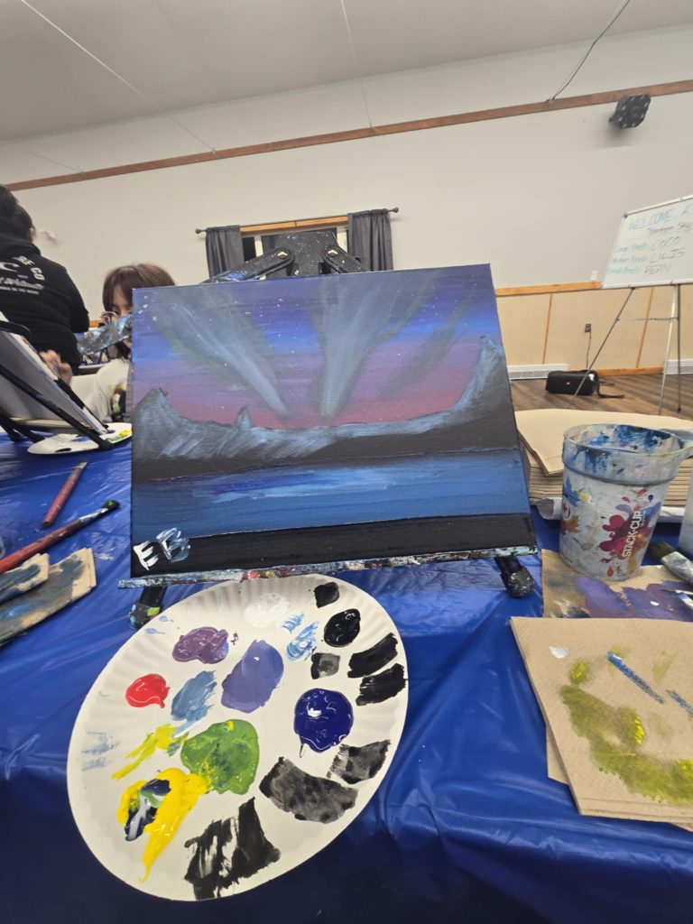 On February 2, children, youth, and families gathered to enjoy a guided painting session with Art Rave Studios, where everyone had the chance to create their own “Northern Sky” paintings.